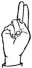 На ћирилици написано ВОЈИН ГРАНУЛА састоји се из 12 слова [?]. Исписано ћириличном једноручном азбуком за глувонеме: